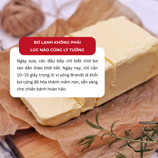 Ngày xưa, những người thợ bánh chỉ có thể lặng lẽ chờ bơ mềm ra trong khí hậu. Giờ đây, chỉ cần 10–15 giây trong lò vi sóng Brandt, khối bơ lạnh đã trở nên mềm mịn như nhung, sẵn sàng cho những mẻ bánh bông xốp và dậy hương.