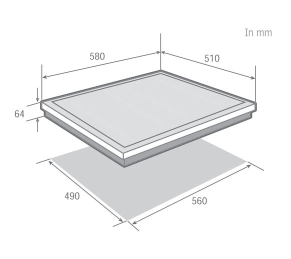 • Kích thước lắp đặt: (Cao x Rộng x Sâu mm) 64 x 560 x 490