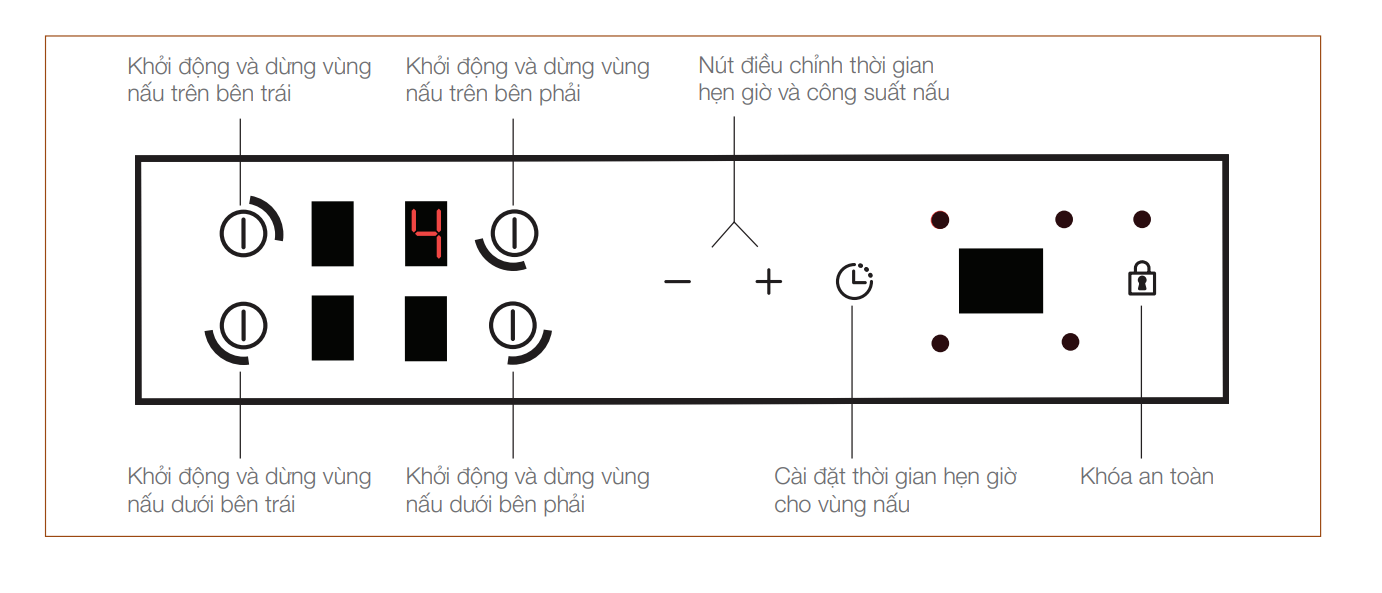 • Bếp từ 4 vùng nấu: